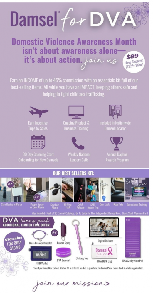 Our mission is to equip, empower and educate women to protect themselves and their families. As an Independent Damsel Pro, I'm not only arming others and experiencing financial freedom, but also offering empowerment and healing to those affected by assault #becauseofdamsel. One by one, we are changing statistics and giving back to the many amazing partner organizations that are making a difference in the lives of those who have been assaulted. As we continue to grow, our hearts and eyes are wide open for where God will take us next.